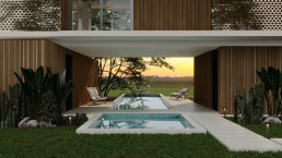 One of the most innovative features of LNA House is the use of shades on the upper floor, which facilitate the Venturi effect. This architectural technique significantly reduces the internal temperature, cooling the house by up to 5 degrees Celsius. This natural cooling system is not only energy-efficient but also enhances the overall living experience by maintaining a comfortable indoor climate. The integration of this feature demonstrates the architects’ commitment to sustainable design, blending ecological consciousness with modern luxury. Thus, LNA House stands as a symbol of how contemporary architecture can create a harmonious balance between human habitation and the natural environment.